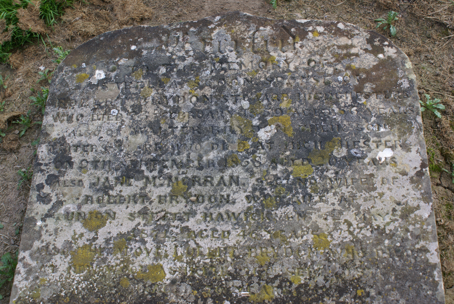 1. Sacred to the memory of Isabella Scoon spouse of Robert Brydon Steward Highchesters who died 23rd February 1859 aged 56 years. Also of Walter Brydon their son who died at Highchesters on 9 September 1858 aged 20 years. Also Jane McMorran second wife of Robert Brydon who died at Union Street Hawick on -2 May 1871 aged 40 years also the above Robert Brydon who died at New Wool Ashkirk on 26 September 1876 Stone